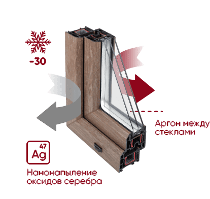 80% площади всей конструкции занимает Pin Up Именно он отвечает за сохранение тепла в помещении. Мы используем особое, энергосберегающее внутреннее стекло - с нанесением специального напыления, которое и позволяет максимально удерживать тепло. А для большей теплоизоляции в пространство между стеклами закачивается аргон - инертный газ, который сводит к минимуму теплопотери стеклопакета.